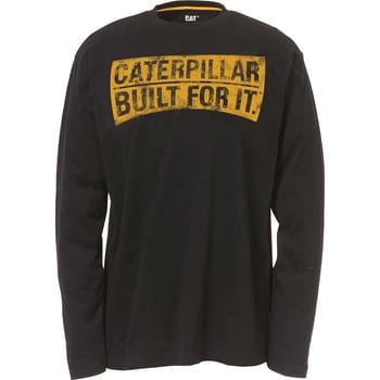 Get help regarding Caterpillar Mens Curved Banner Long Sleeve T Shirt
