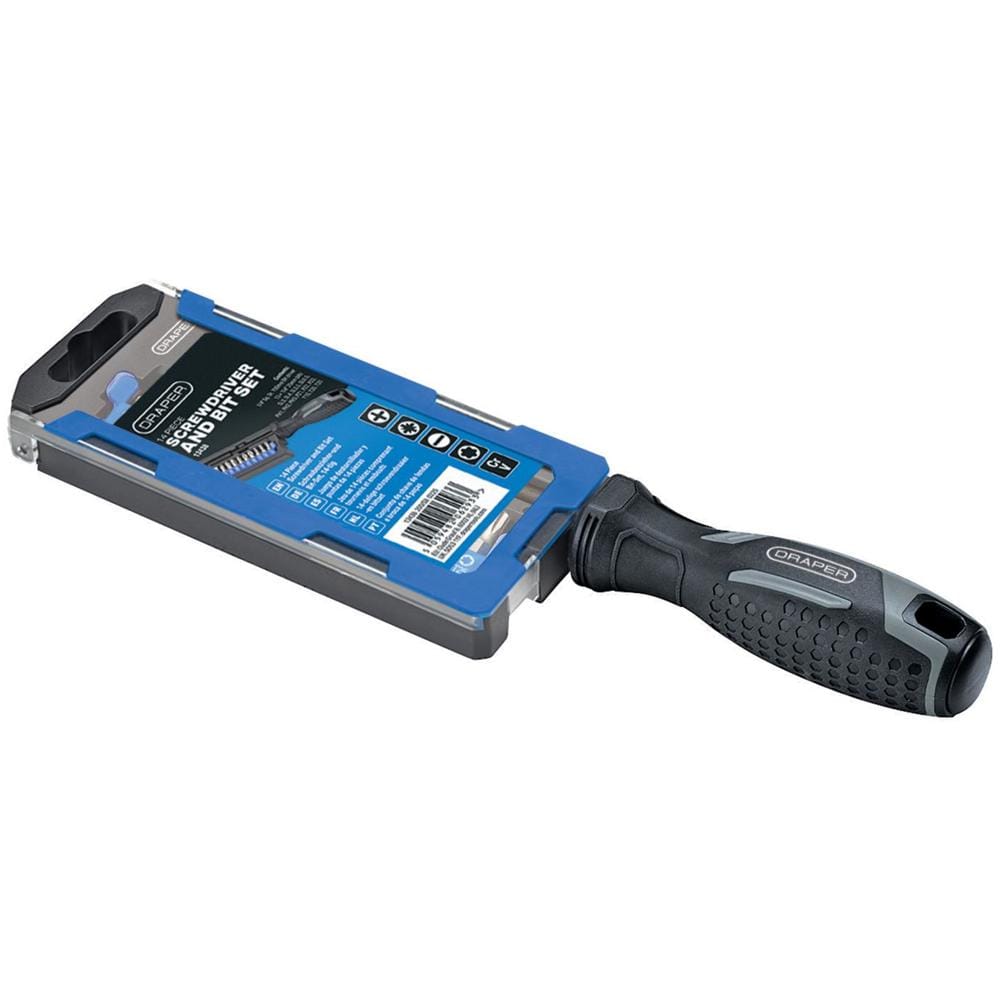Draper Soft Grip Magnetic Bit Holder Screwdriver and 14 Piece Bit Set