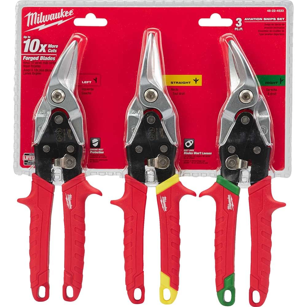 Get help regarding Milwaukee 3 Piece Aviation Metal Snips Set