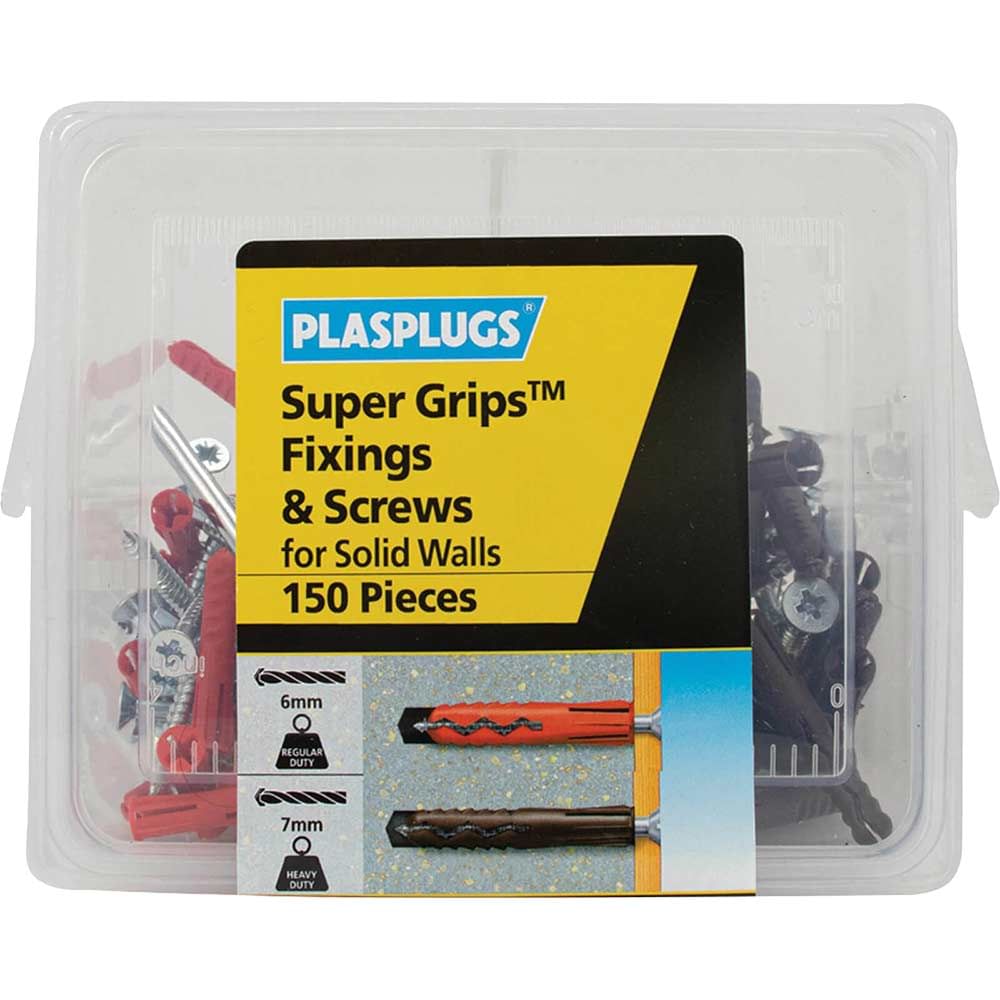Plasplugs 150 Piece Super Grips Fixings and Screws Kit for Solid Walls