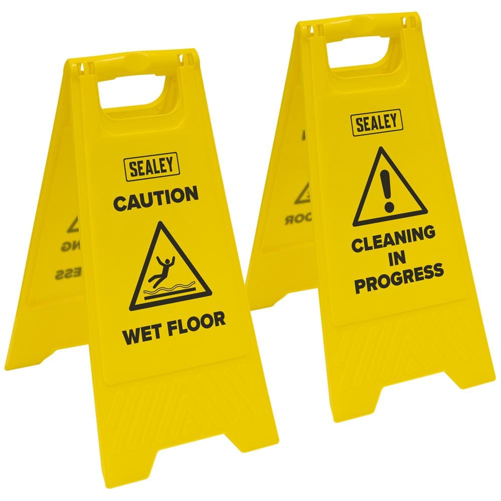 Sealey 2 Piece Wet Floor Cleaning in Progress Signs Set