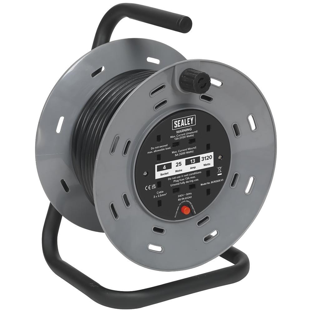 Sealey 4 Socket Heavy Duty Cable Extension Reel 240v