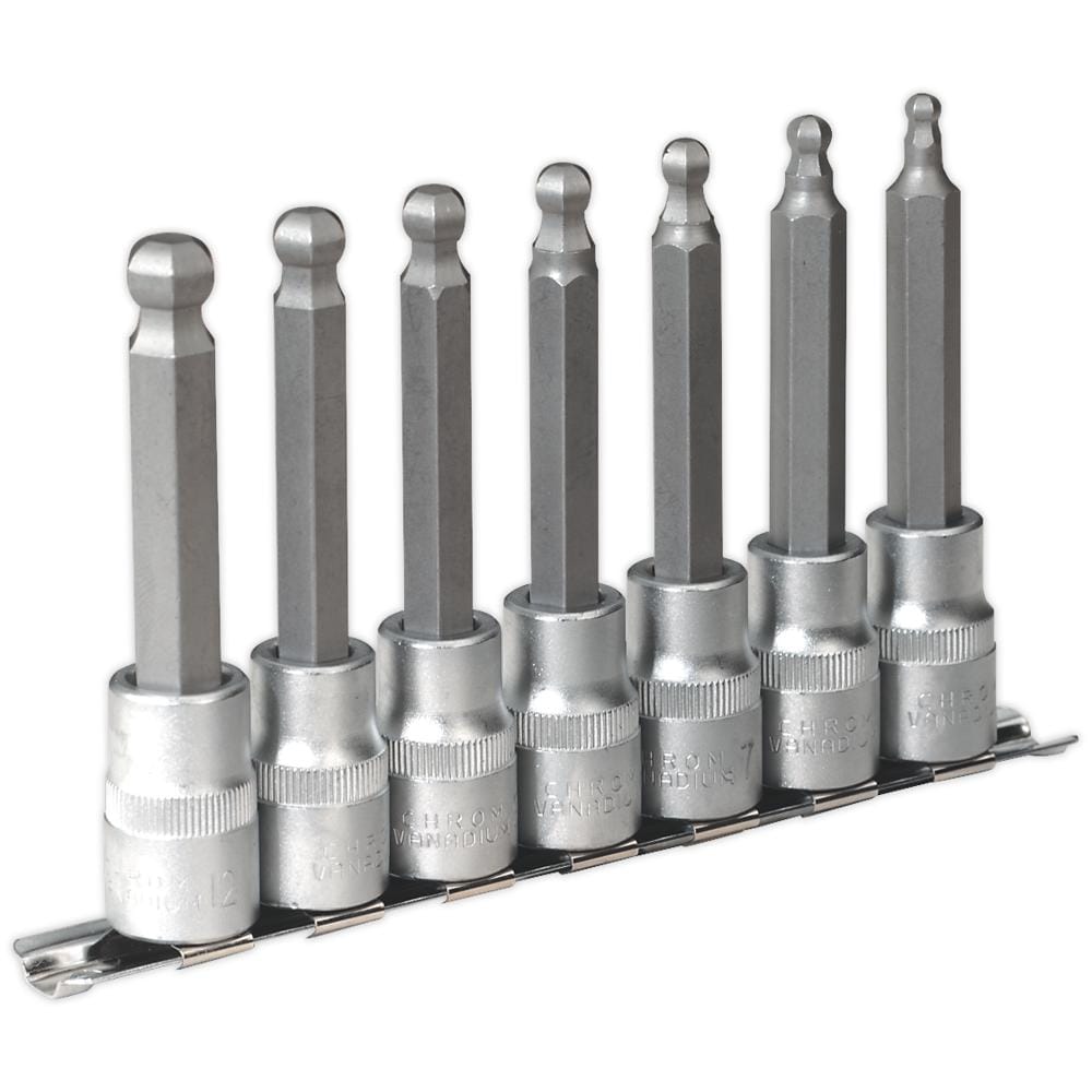 Sealey 7 Piece 1/2" Drive Ball End Long Hexagon Socket Bit Set Metric
