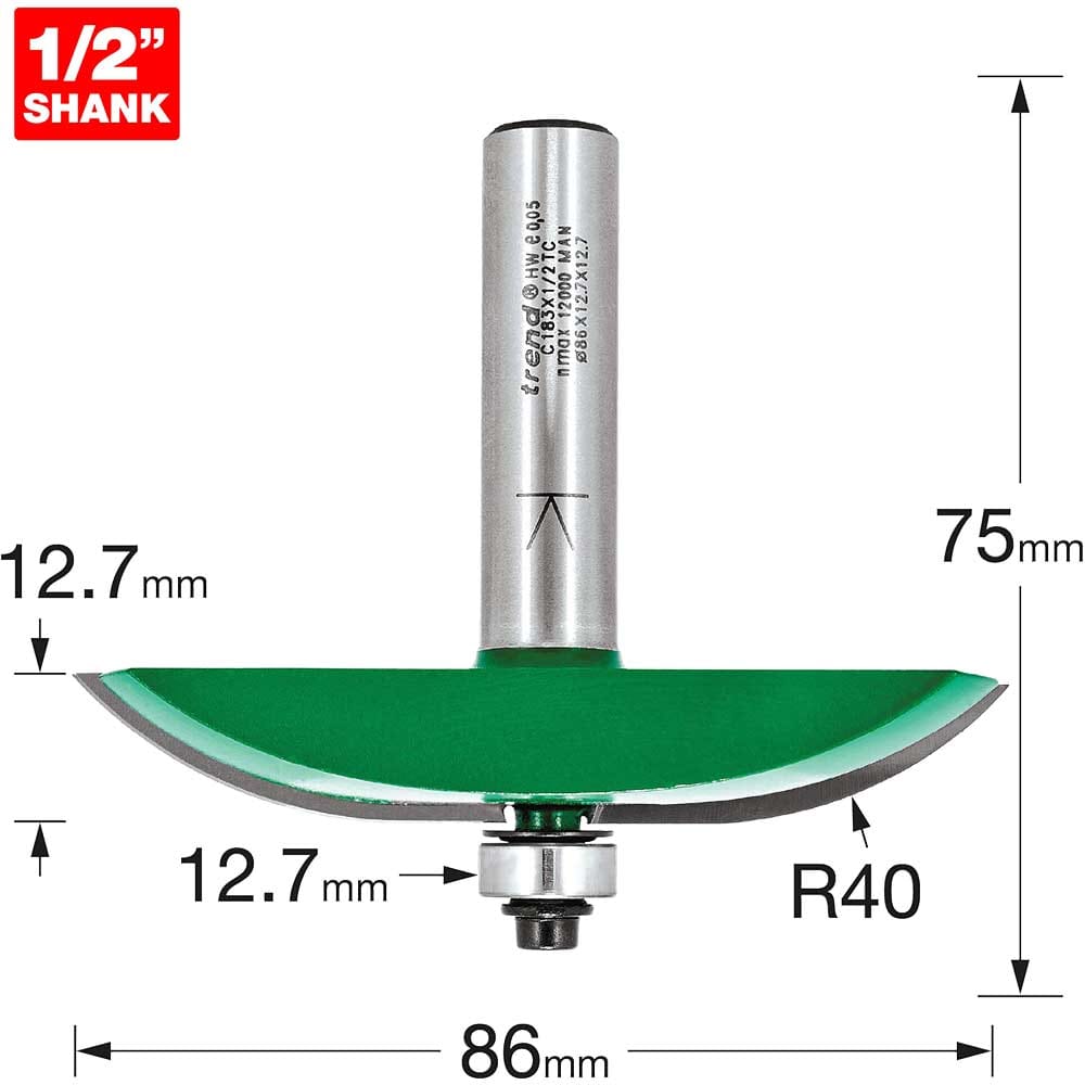 Trend CRAFTPRO Bearing Guided Large Radius Panel Raiser Router Cutter